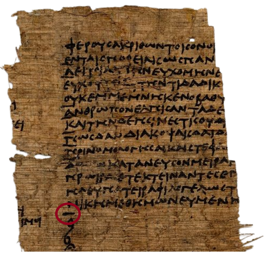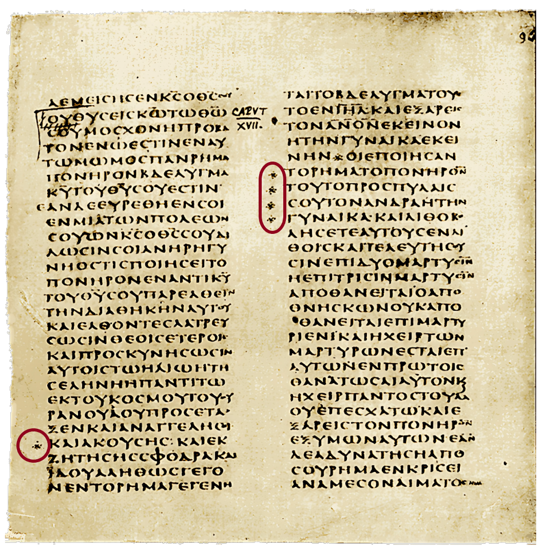 Fig. 8.24: Asterisks from 4th-5th century Greek text, (rings added), Wikimedia Commons, <https://commons.wikimedia.org/wiki/File:Asteriskos.gif> [public domain, accessed April 2025]