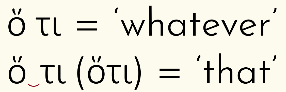 Ancient Greek writers occasionally separated words with mid dot interpuncts (·), but mostly wrote in scriptio continua (as did writers of Greek’s child systems Coptic, Gothic, Glagolitic and Cyrillic).¹⁰ A diastole or hypodiastole () was sometimes used to avoid ambiguity by distinguishing two words that could otherwise be misread as one. Conversely, an enotikon (sometimes called a Greek hyphen) () was sometimes used to indicate that a series of letters should be read as a single word. Paragraphoi ()¹¹, possibly derived from the Greek letter gamma (Γ), could also be used to mark a division in a text. To separate paragraphs, a blank line was often utilised.¹²