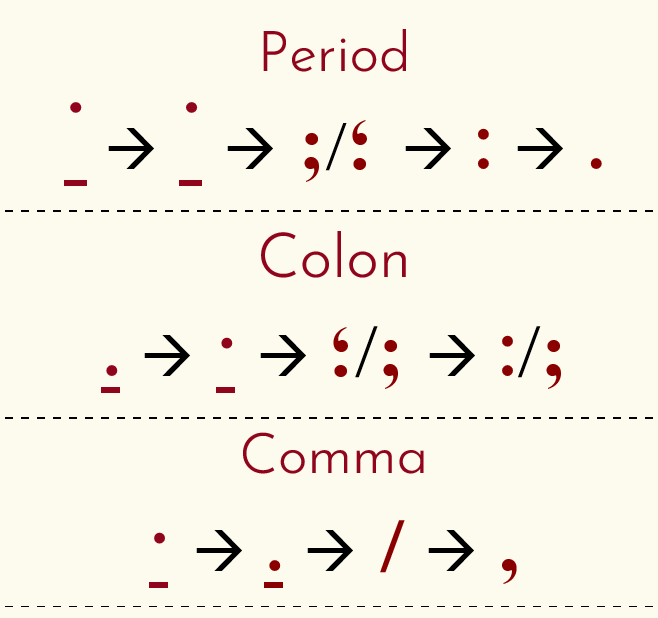 Fig. 8.12: David Schrader, ‘Evolution of the Period (Full Stop), Colon and Comma’ (© author’s own, 2025)