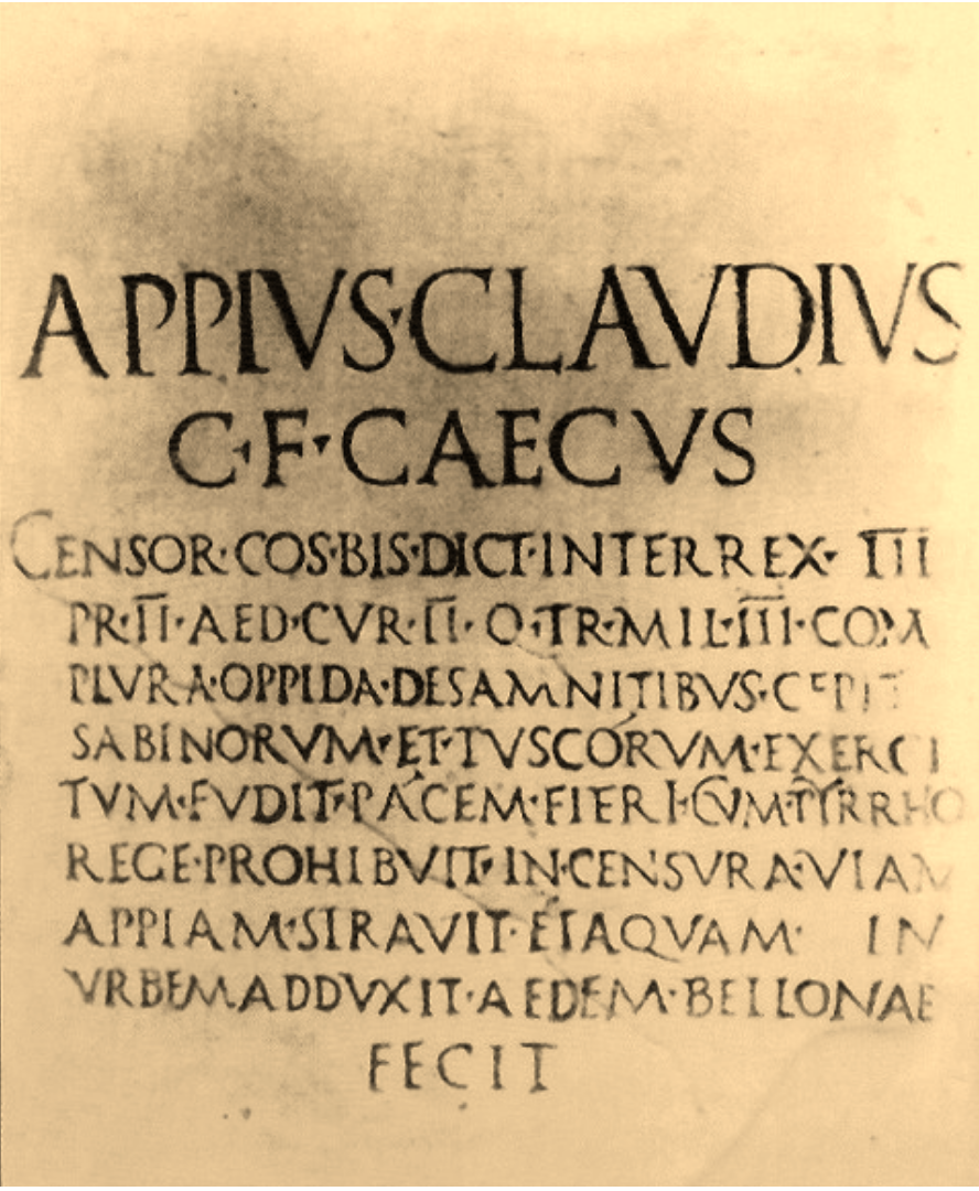 Fig. 8.7: Appius Claudius, (colour enhanced), Wikimedia Commons, <https://commons.wikimedia.org/wiki/File:Appiuscaecusstele01.jpg> [CC BY-SA 3.0, accessed April 2025]
